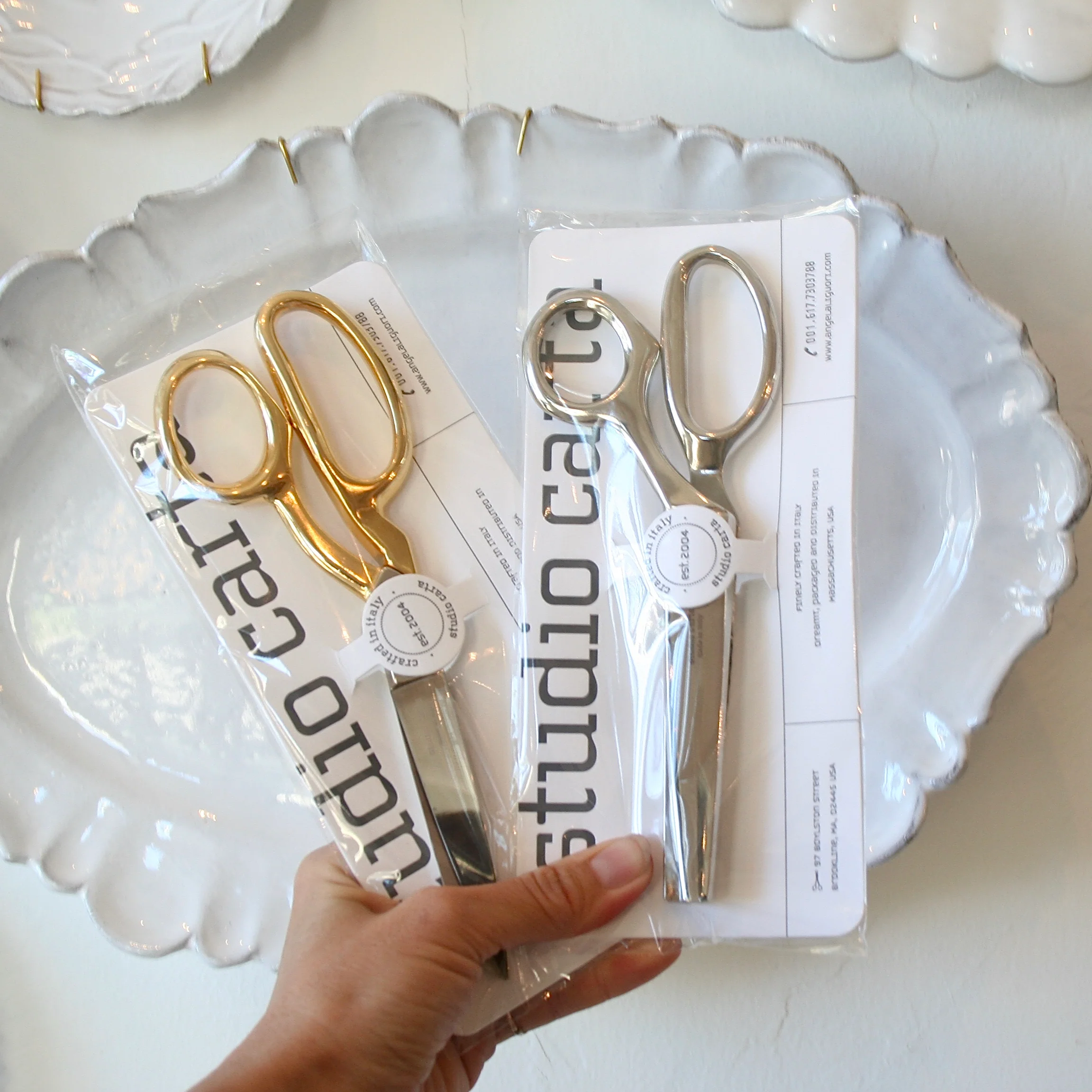 Tailor's Pinking Shears - These are wonderful heavyweight pinking shears made of hard tempered steel that can cut through even the heaviest material. They cut with a zig zag edge, to help prevent fraying on your ribbon or fabric and to keep your projects crisp and clean. We also like to use them for creative projects when we want a zig zag edge. 7 1/2"